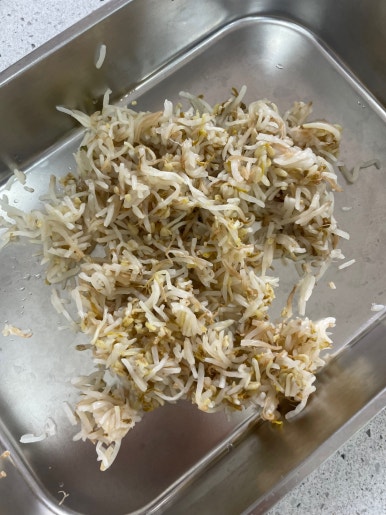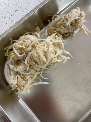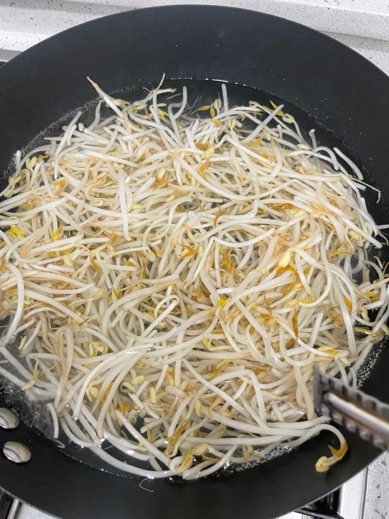숙주는 흐르는 물에 깨끗하게 씻은 다음 끓는물에 가볍게 데쳐주세요