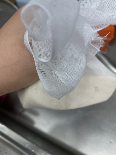 두부는 면포에 싸서 물기를 꽉 짜주세요