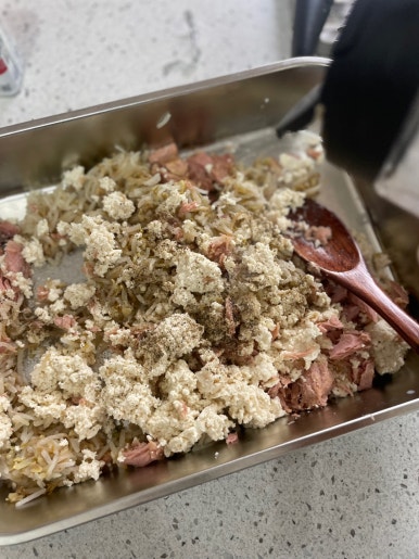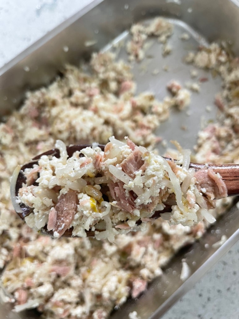 (소금+후추로 간을 더해 두부와 참치향을 중화해요)