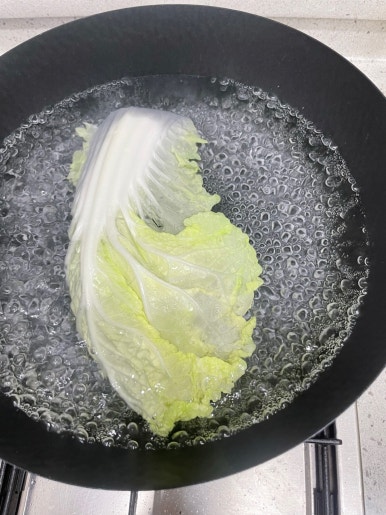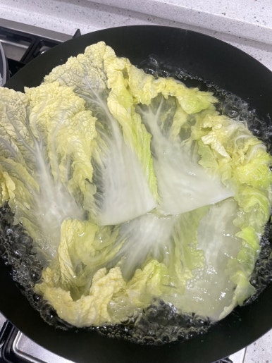 배추는 한 장 씩 떼어 깨끗하게 씻은 후 끓는 물에 데쳐요