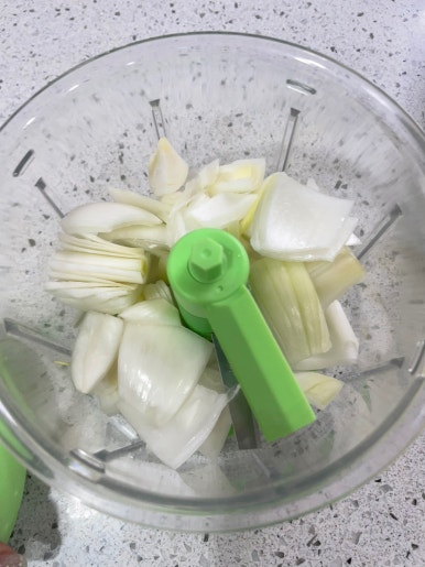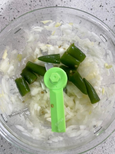 양파와 청양고추를 잘게 다집니다